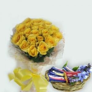 Steal someones heart with the luxury of roses and the tenderness of a cuddly teddy bear with the sweetness of chocolates. Hamper includes a teddy bear(6"), bunch of 12 red roses and 5 assorted cadbury chocolates. Product can be customize, as per the request on phone call. Flowers might arrive in bud/Semi bloom/fully bloom condition as per local availability at the time of delivery.
